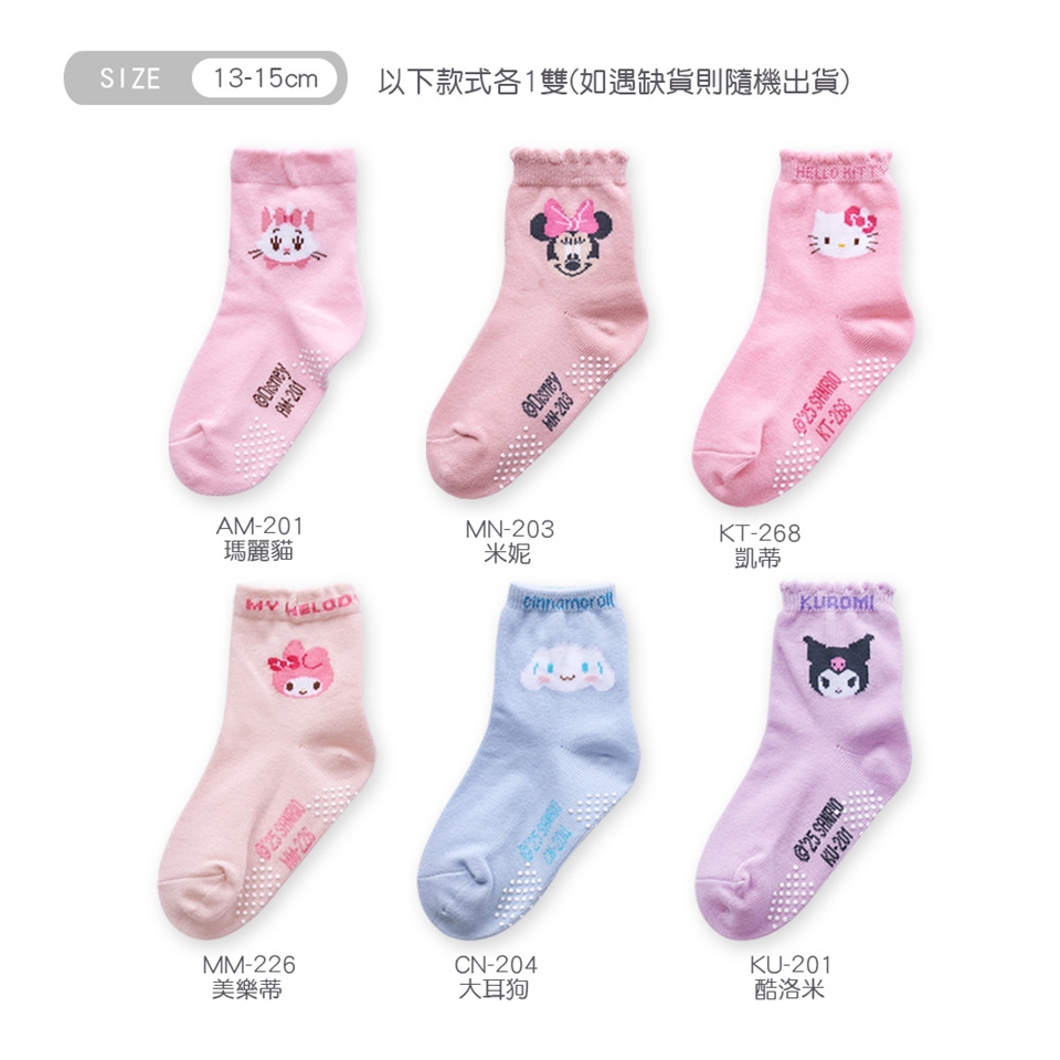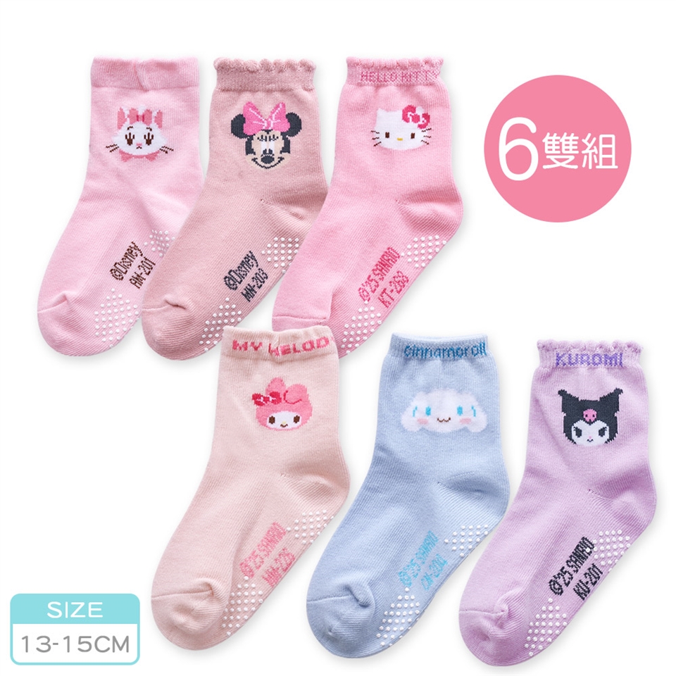 【 迪士尼 三麗鷗造型短襪-6雙組 】