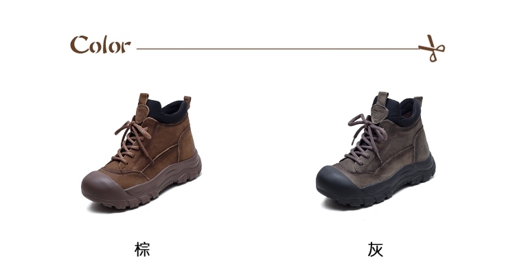 【VECCHIO】真皮護趾高筒厚底休閒鞋/真皮頭層豚皮護趾百搭復古拼接高筒厚底休閒鞋 女鞋 棕