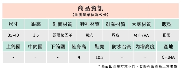 2.鞋類商品依功能及用途之不同,鞋底各有其止滑係數之個別不同,使用鞋類商品請用於正常平坦之路面,非雨鞋或雨靴類商品,請避免穿著於下雨濕滑路面上行走。