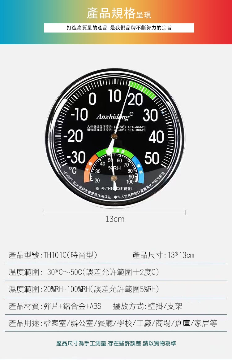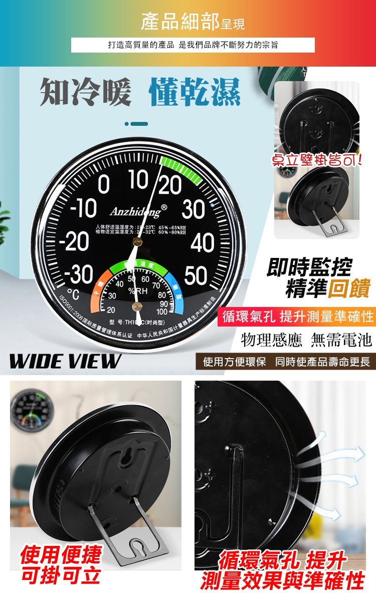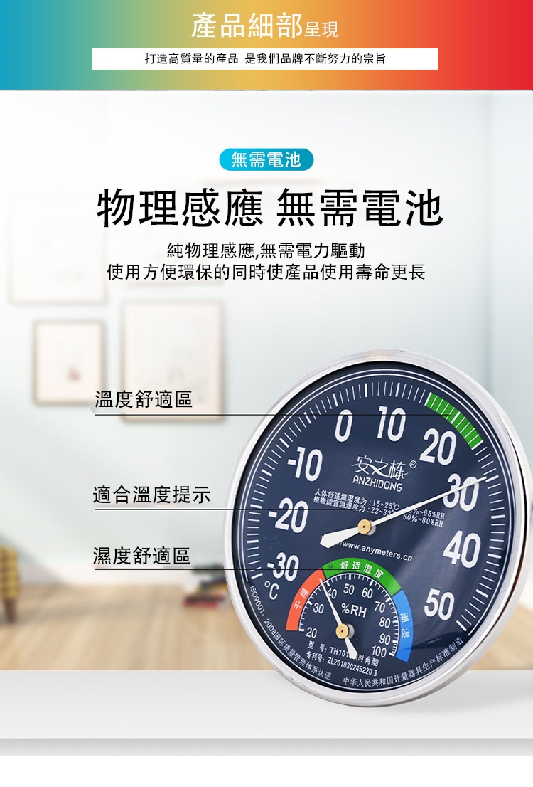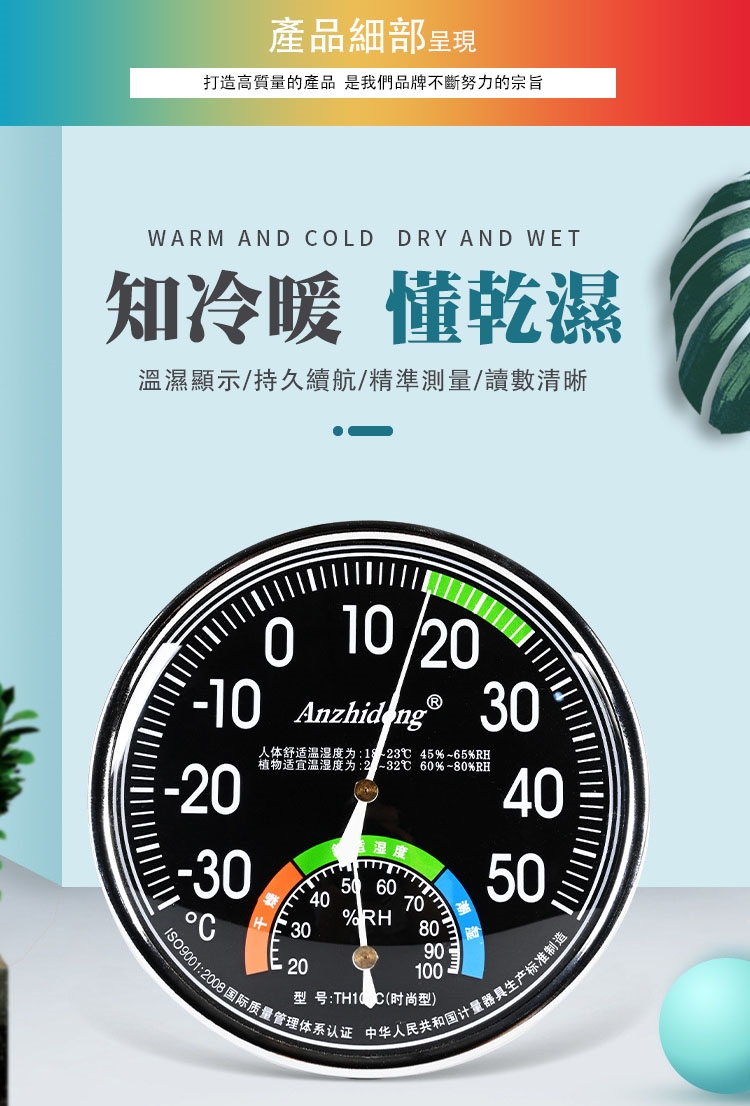 【COMET】13cm室內指針溫濕度計表(濕度計 溫濕度計 溼度計 室內溫度計 戶外溫度計 免電池/TH101)