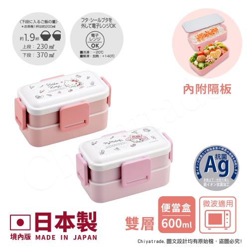 【百科良品】日本製 三麗鷗 凱蒂貓 美樂蒂 可愛彩妝精品 雙層便當盒 抗菌加工Ag+ 600ML(日本境內版)-任選款