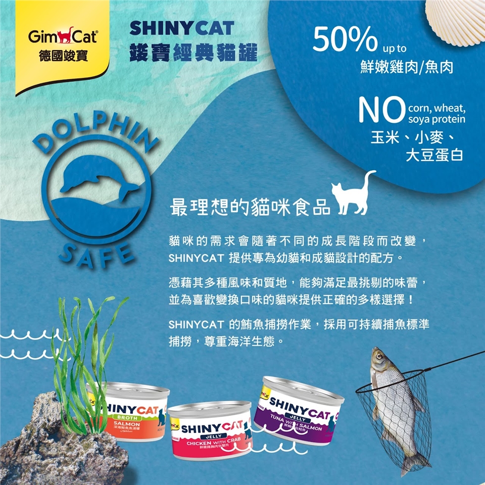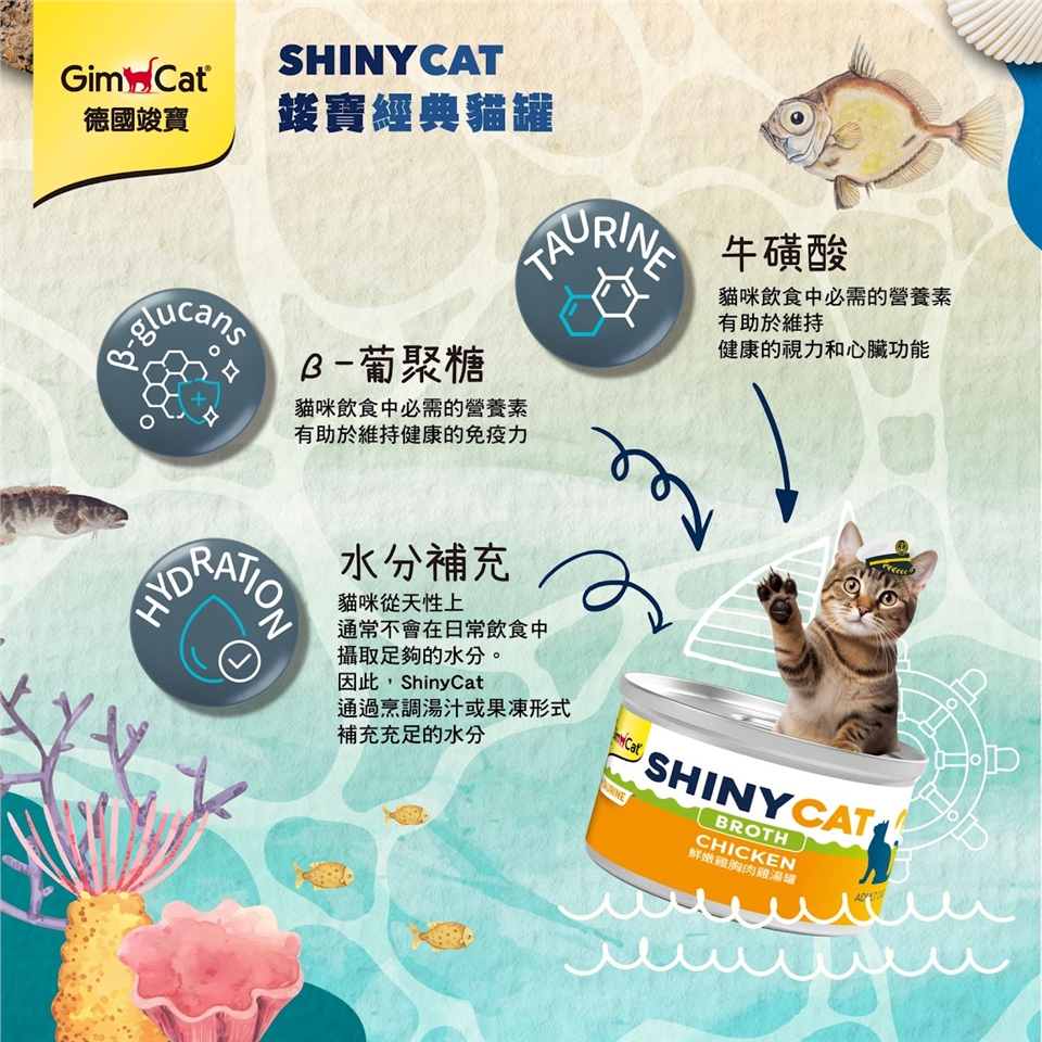 特色:使用嫩滑的雞肉或新鮮的魚肉塊在營養高湯中輕輕煮熟,含有牛磺酸和維生素E,不含麩質和糖分,無添加色素、防腐劑或人工香料。