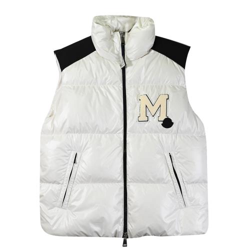 MONCLER 品牌M LOGO徽章雙向拉鍊羽絨背心.白/黑邊