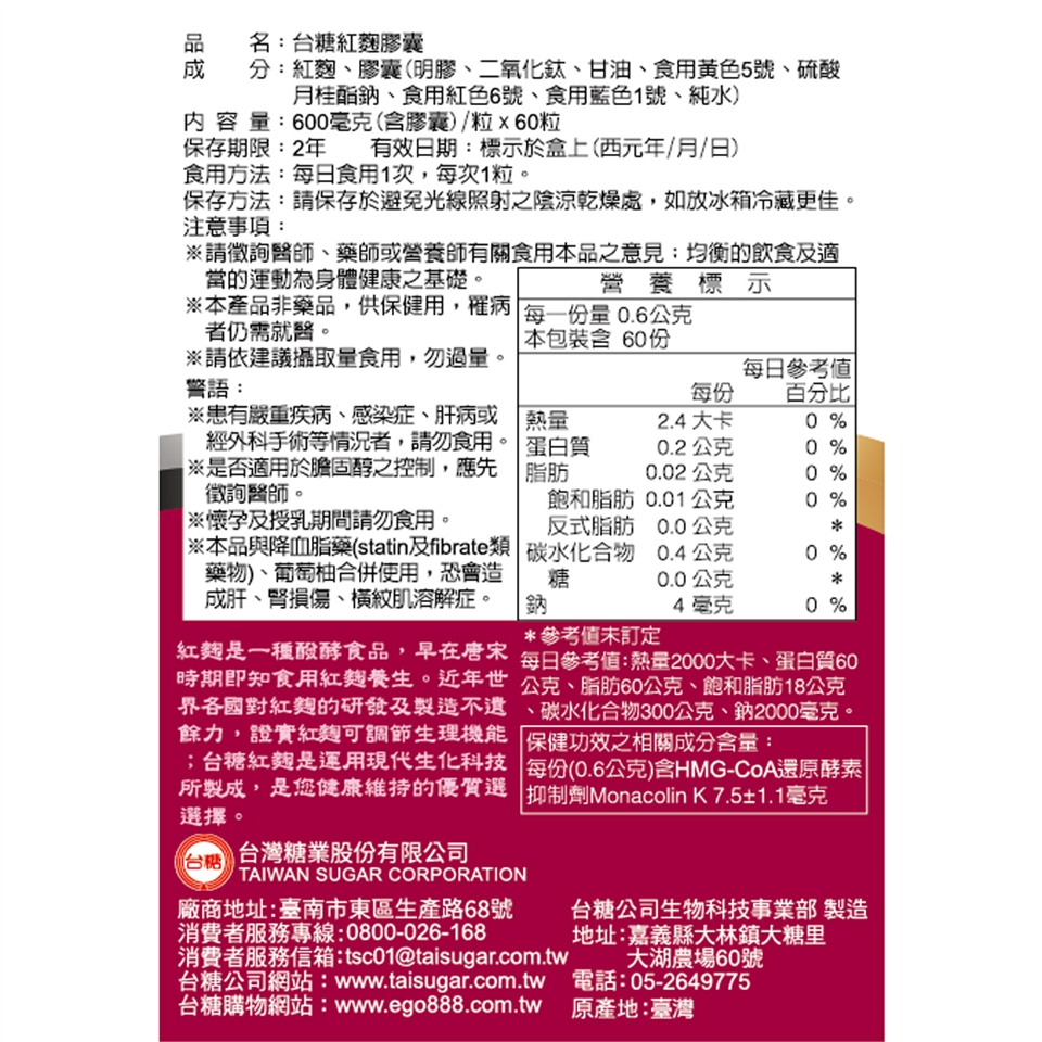 台糖紅麴膠囊(60粒)