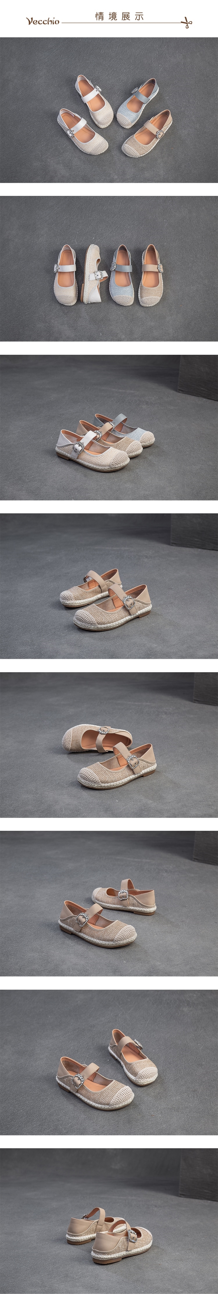 【VECCHIO】全真皮兩穿低跟娃娃鞋/全真皮頭層牛皮兩穿法設計透氣織物拼接一字帶低跟娃娃鞋 女鞋 棕