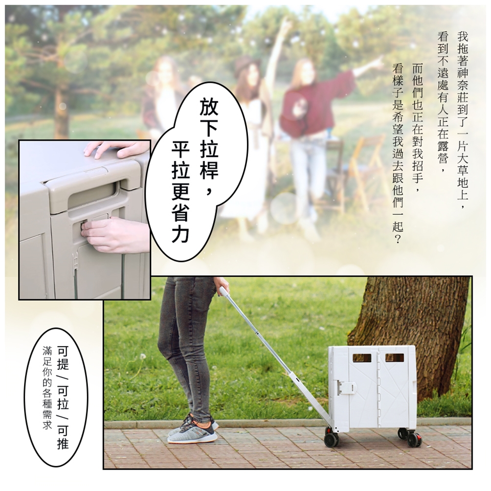● 適用多種場景與用途,購物、買菜、車載收納、拿包裹、拉重物、野餐、釣魚...等通通輕鬆使用