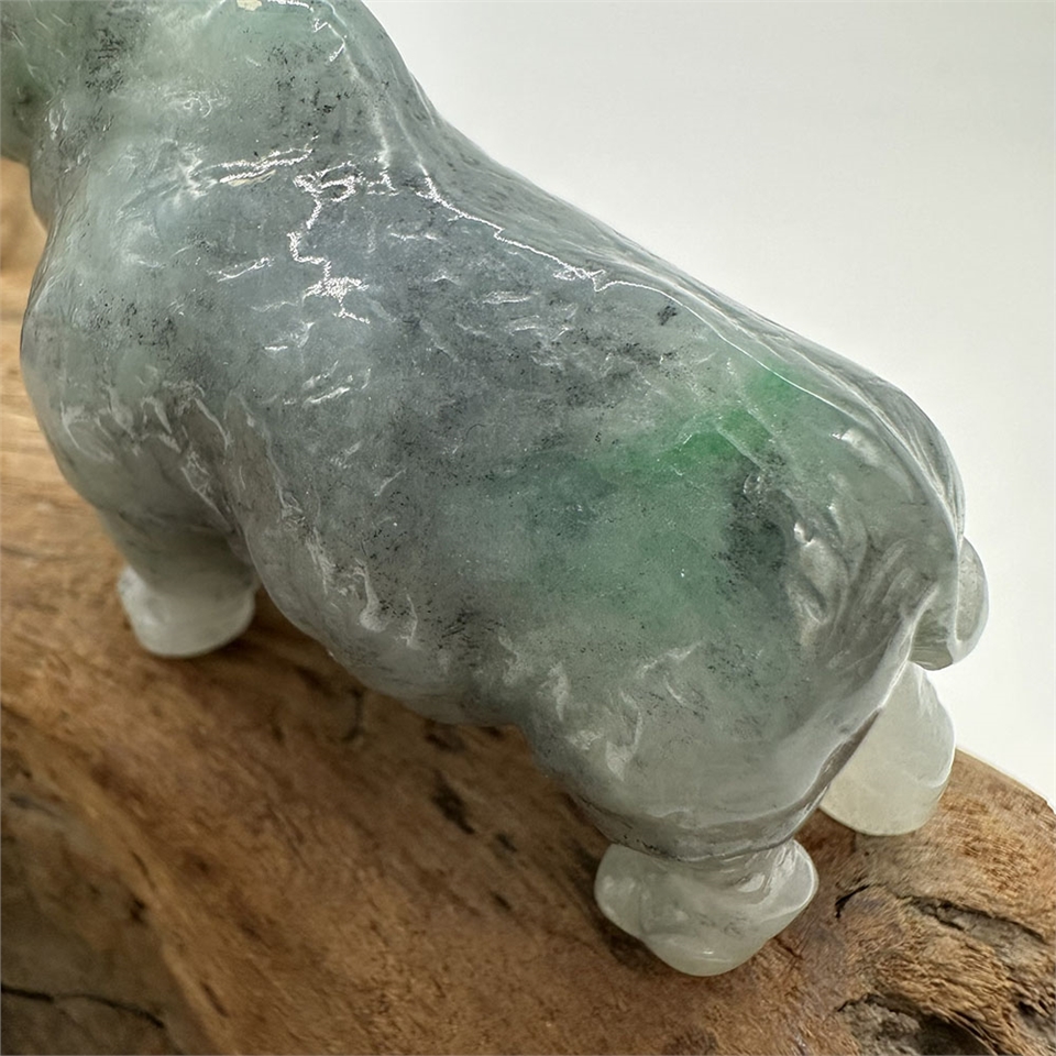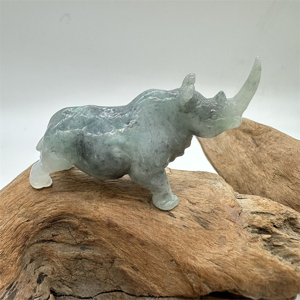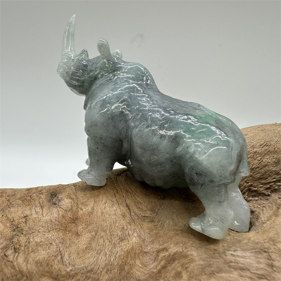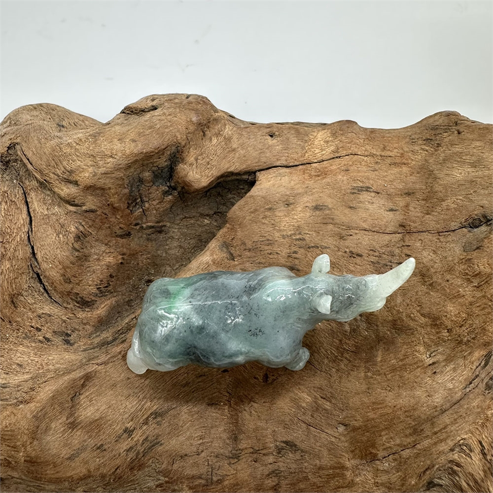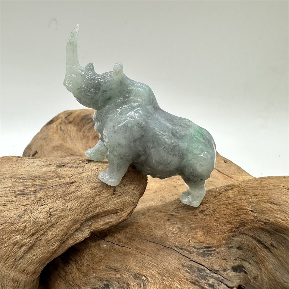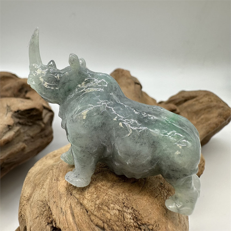 【肌容雪】緬甸天然A貨翡翠藍水翡飄綠花犀牛擺件 編號616