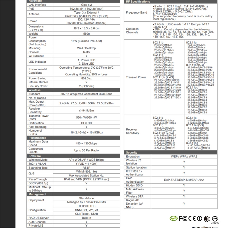 PoE+ 埠符合 IEEE 802.3af/at 標準,最高每埠可提供 30W 供電,總輸出功率高達 400W