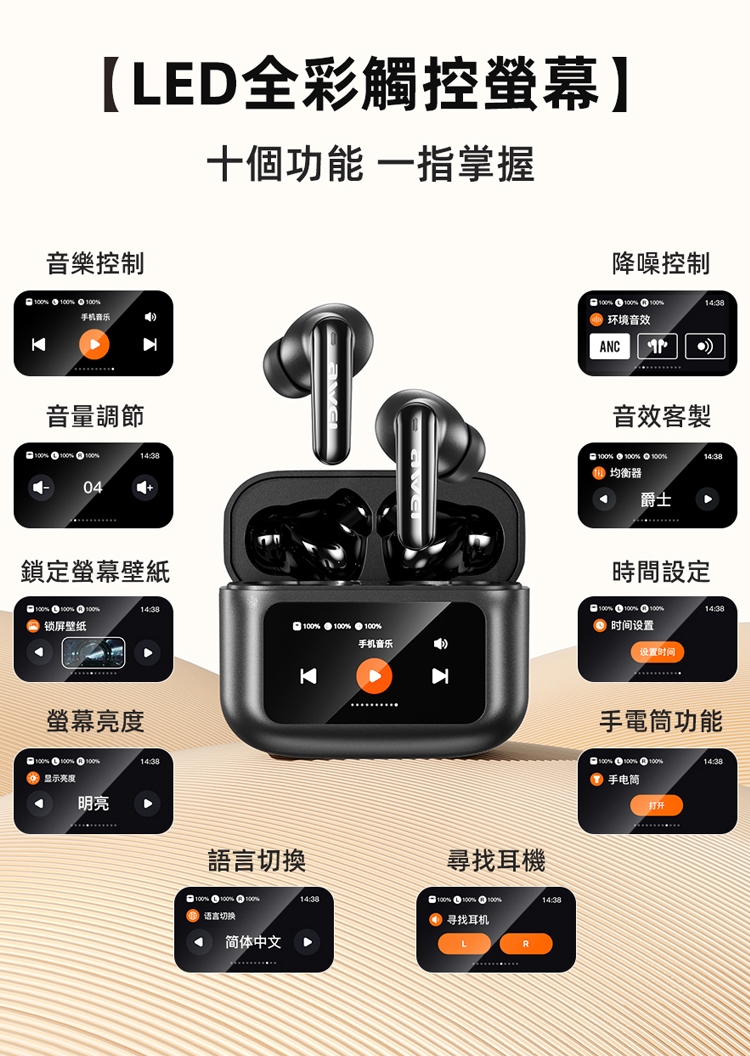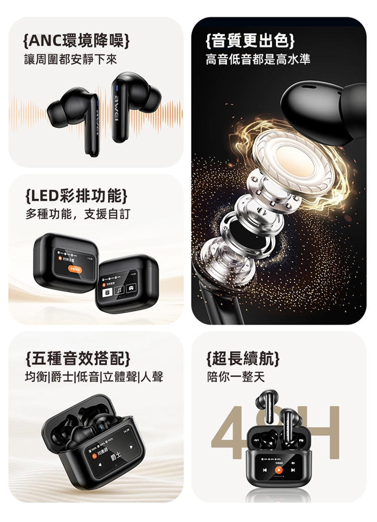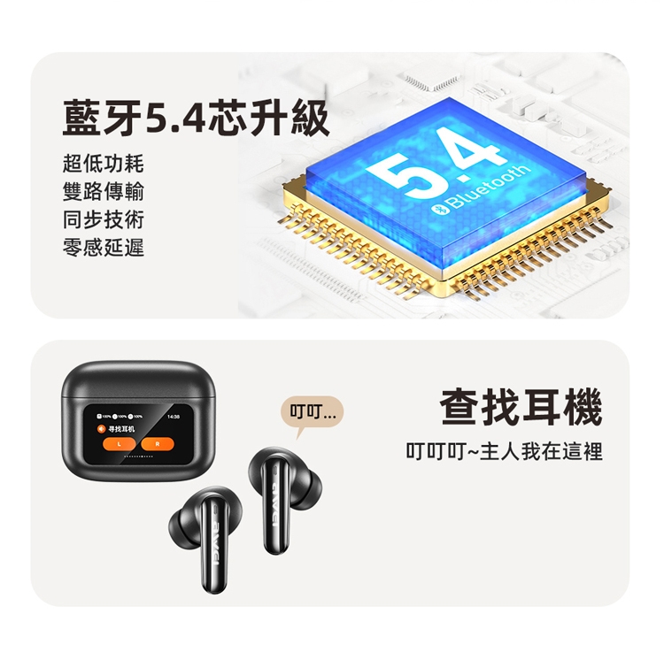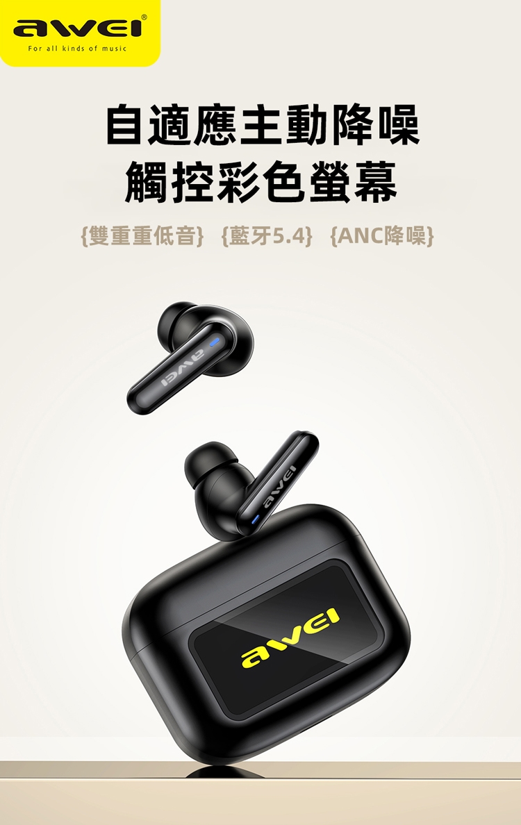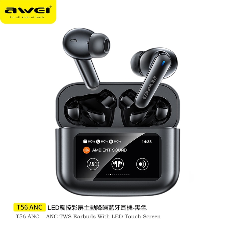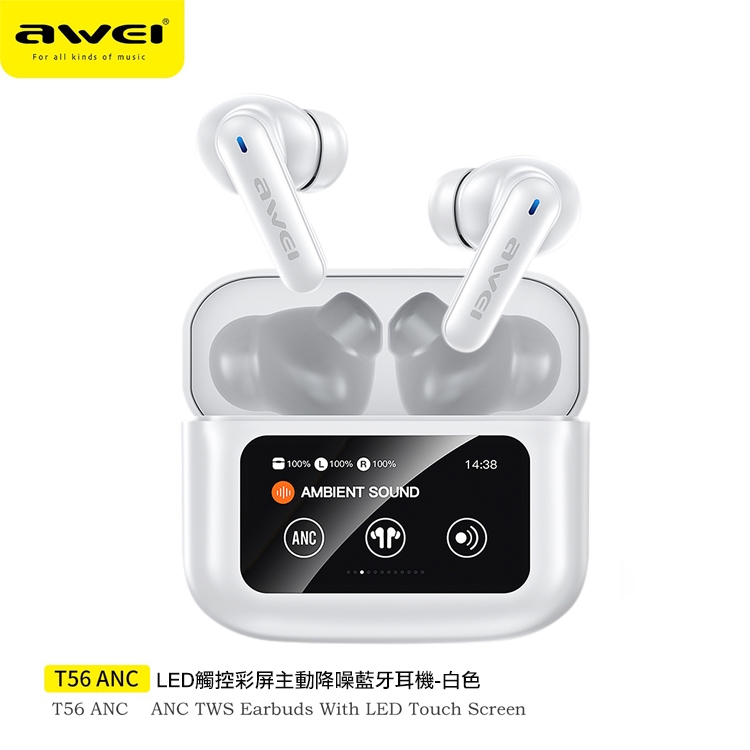 AWEI用維T56 ANC降噪觸控彩屏主動降噪藍牙耳機