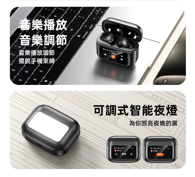 AWEI T56 備有一個直觀的LED觸控彩色螢幕,使用者可以輕鬆切換歌曲、調整音量或選擇不同的音效模式。這款耳機提供五種音效模式:均衡、爵士、低音、立體聲和人聲,讓您根據不同的音樂類型或偏好來自定義聽覺體驗。