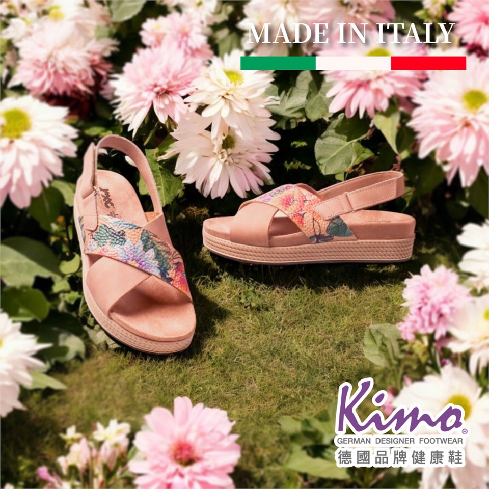 Kimo 義大利牛皮印花寬帶平底涼鞋 (杏色 7585506060)