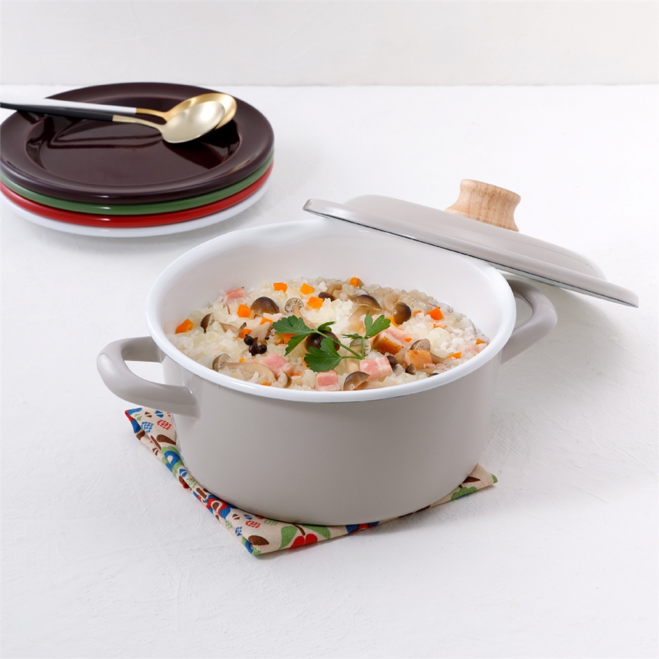 琺瑯盒可適用烤箱(木柄、鍋蓋不可使用於烤箱、洗碗機、烘碗機)。