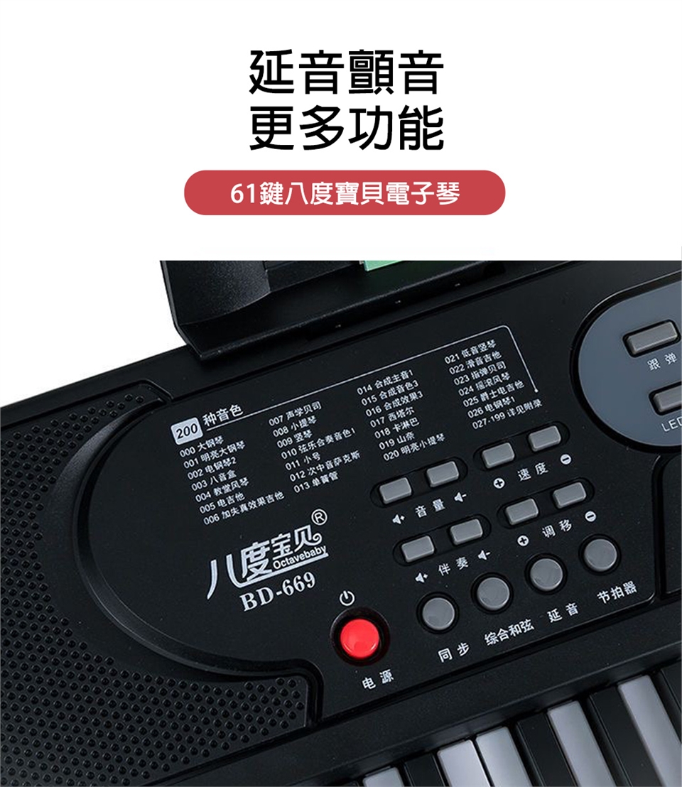 61鍵 搭載了多種音效+節奏,更有全鍵盤打擊樂