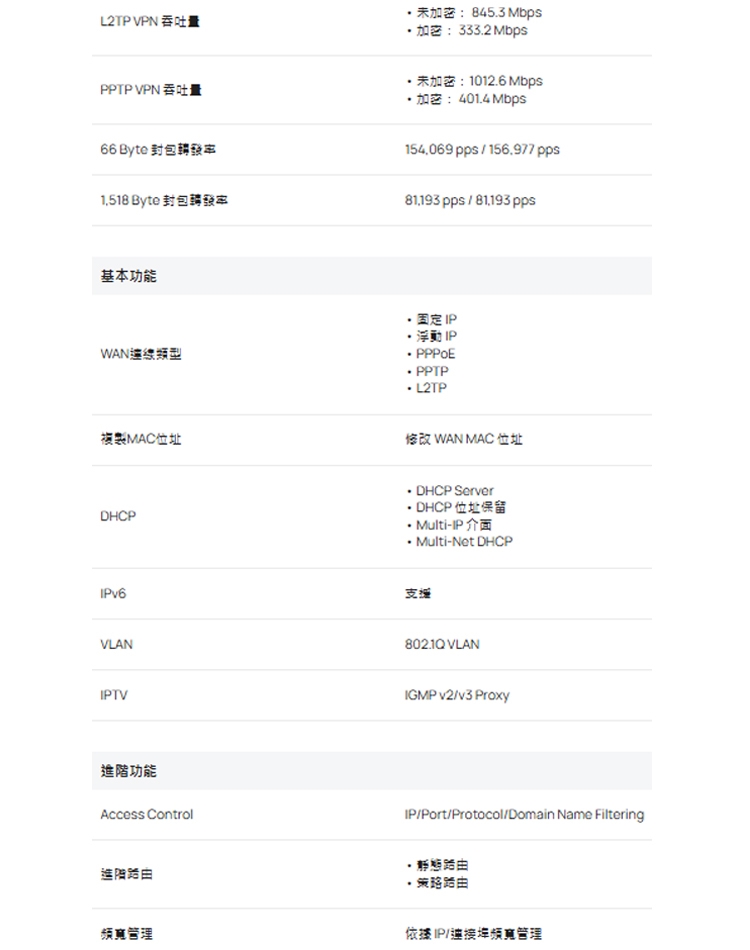 高達4個WAN連接埠:具備兩個Gigabit SFP WAN/LAN連接埠、一個Gigabit RJ45 WAN連接埠以及一個Gigabit RJ45 WAN/LAN連接埠。