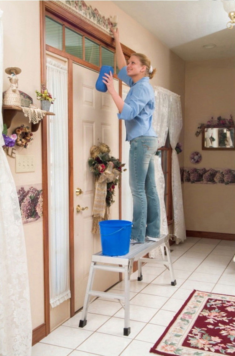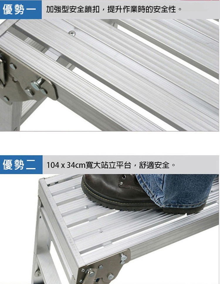 帶有長方形寬大工作平台,展開後梯腳可以鎖定。