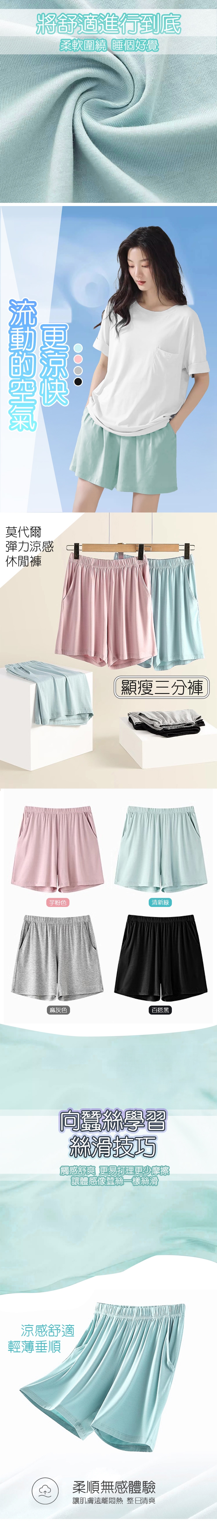 商品名稱:莫代爾親膚涼爽彈性舒適休閒短褲-Z/睡褲 休閒褲 莫代爾涼感 運動褲 褲子女