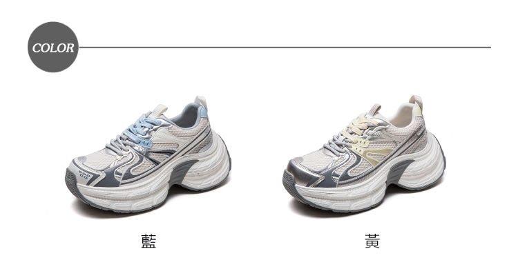 【BLACKHOLE】網面厚底老爹鞋/百搭復古潮流個性網面流線拼接厚底老爹休閒運動鞋 女鞋 黃