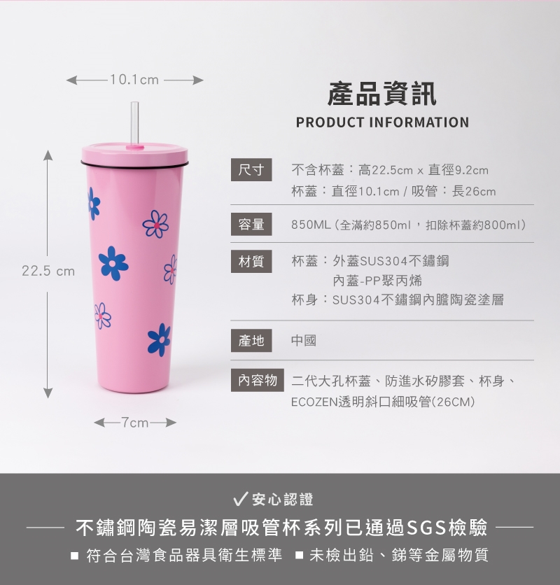 •請勿使用不鏽鋼吸管於杯內攪拌,過度施力恐會造成陶瓷層表面刮痕及掉漆。