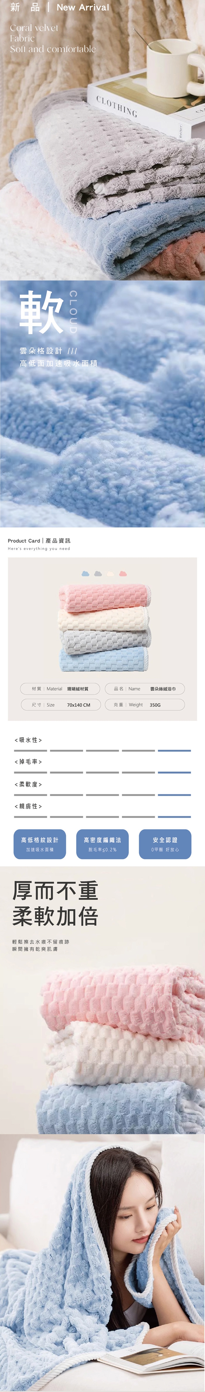 品名 : 輕柔雲朵格子瞬吸絲絨浴巾