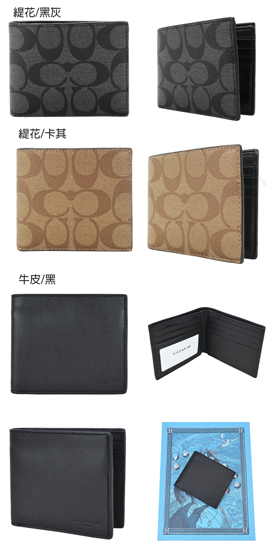 COACH 緹花LOGO/素面牛皮7卡男短夾(任選)