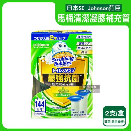 日本SC Johnson莊臣-最強洗淨防污馬桶清潔凝膠補充管38gx2支/盒-薄荷(黑金綠標)(本品不含推桿,坐式馬桶去漬消臭黏凍,免刷洗潔廁香氛凍)