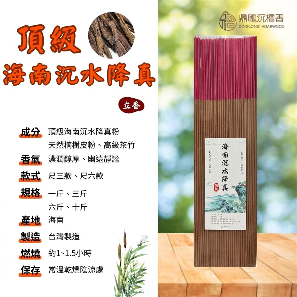 「頂級海南沉水降真立香」以歷史傳承的沉香工藝,打造高品質的香品,讓您在每一次燃香中感受古老香氣的深邃與魅力,帶來身心的平靜與祥和。
