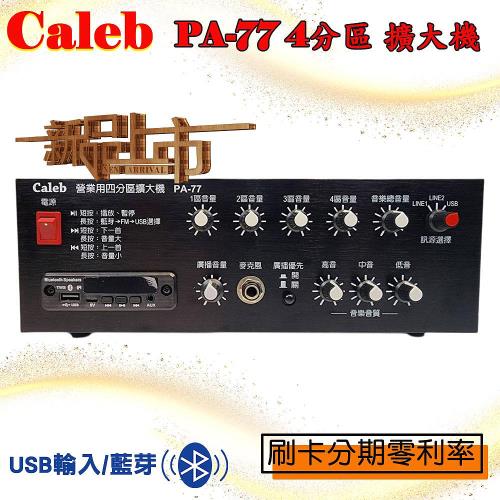 Caleb PA-77 四分區營業用擴大機(USB輸入/藍芽. 可4支喇叭獨立調整音量)