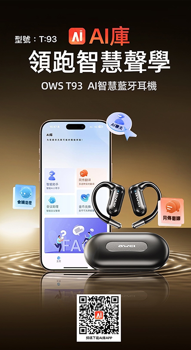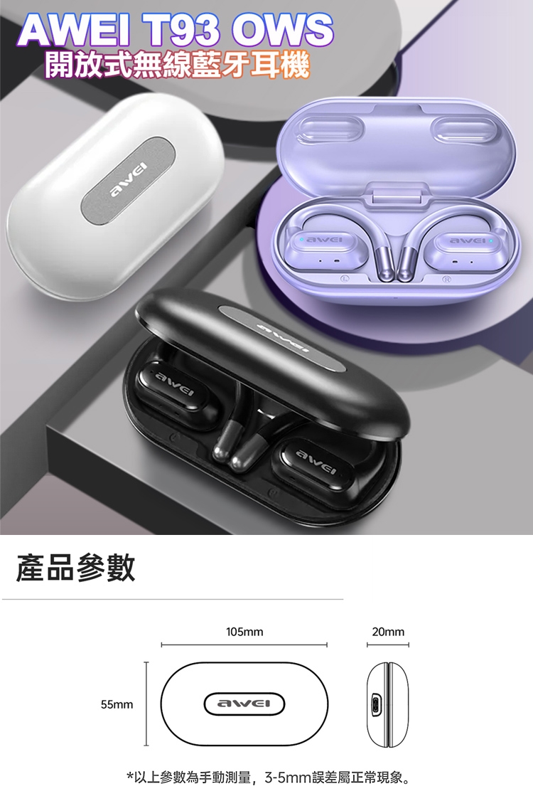 AWEI 用維T93 OWS開放式無線藍牙耳機