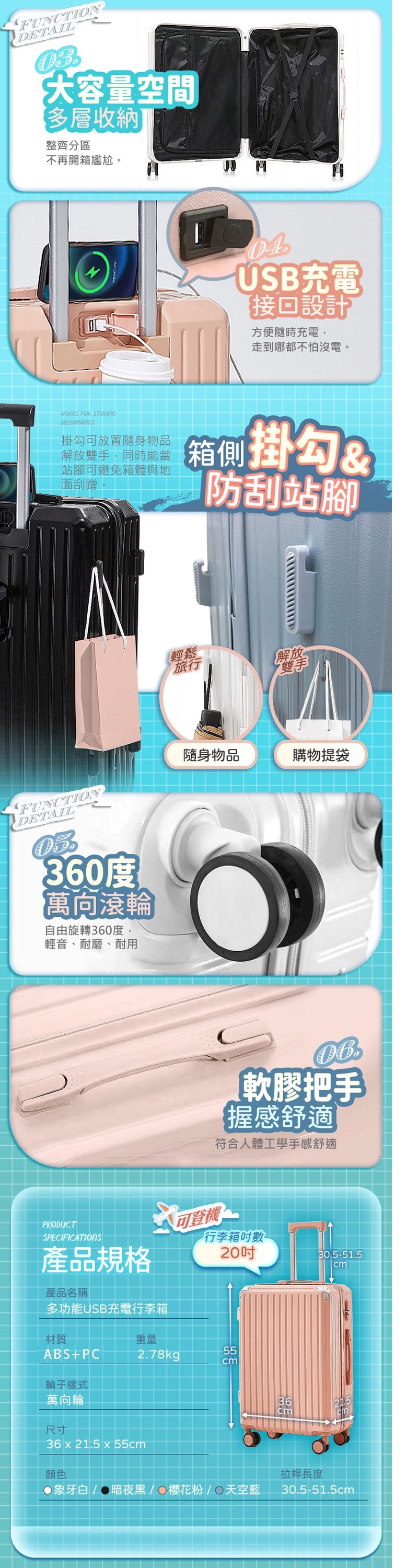 品名:多功能USB充電行李箱