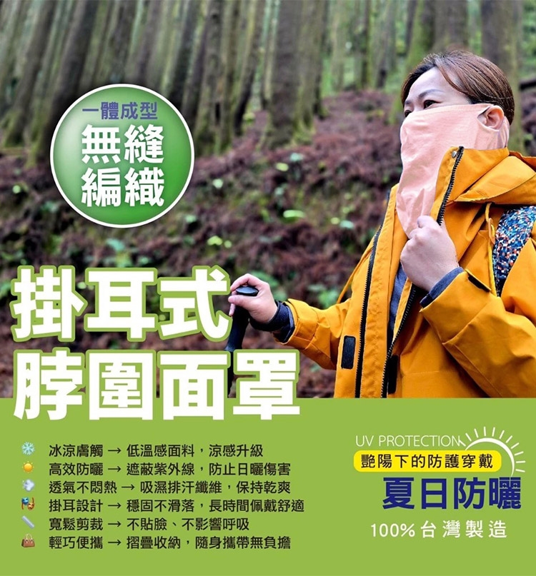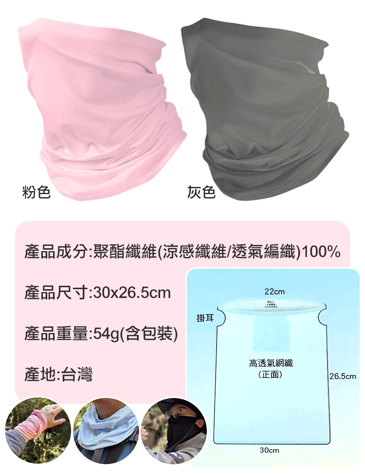 【Amiss】台灣製涼感防曬面罩(抗UV耳掛式面罩 冰涼膚觸 透氣面罩 一體成型萬用巾 防曬頭巾/KT-166)