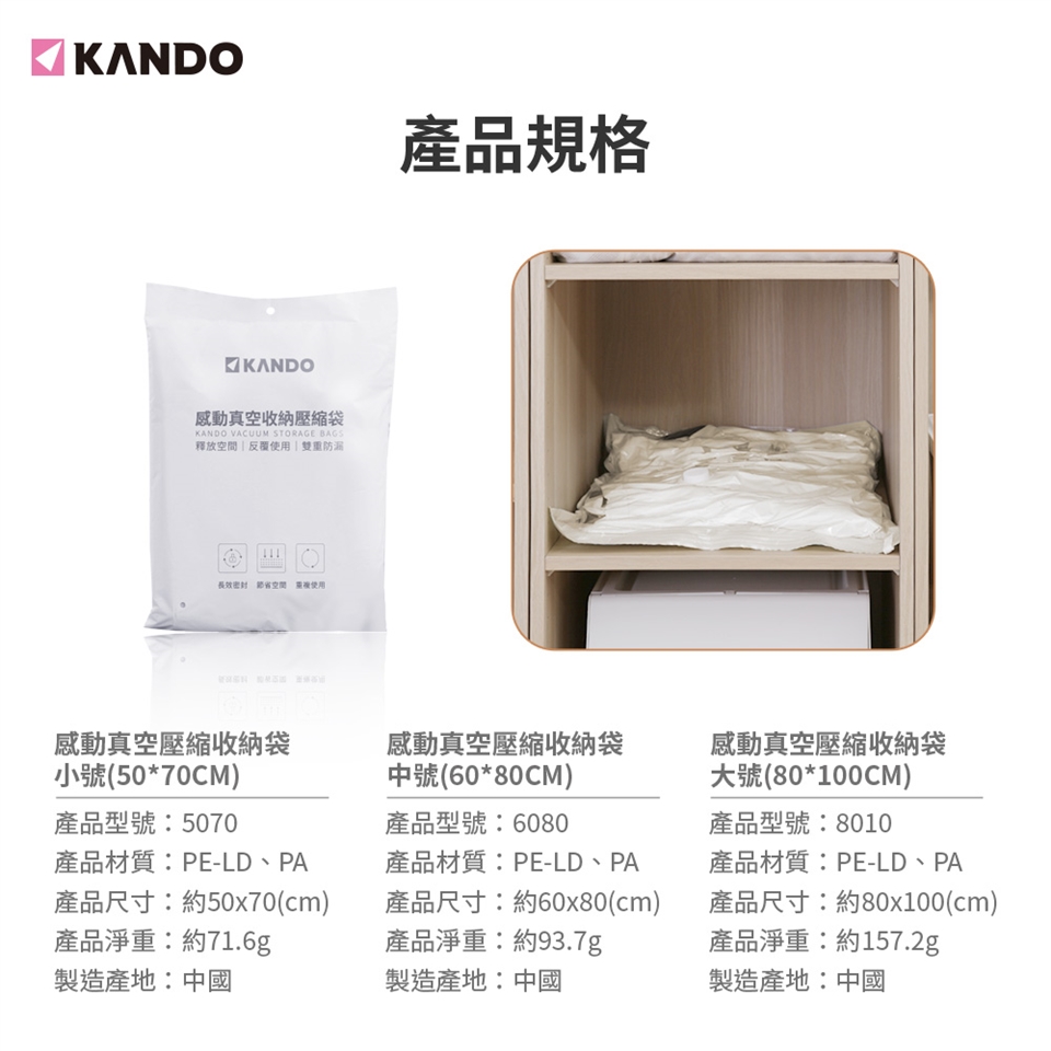 包裝內容:真空壓縮收納袋中號1入裝