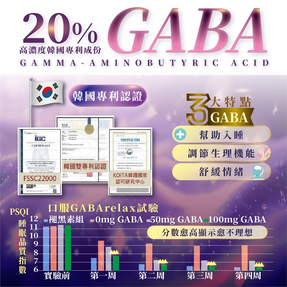 韓國專利GABA20%幫助入睡