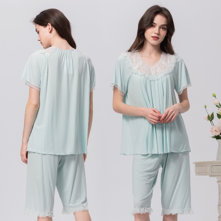 C款-優雅樂章涼感短袖褲裝-薄荷綠