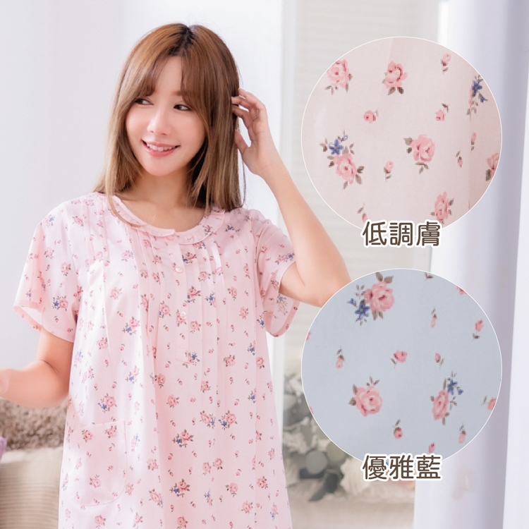 B款-玫瑰細花短袖洋裝-花樣粉/優雅藍/低調膚