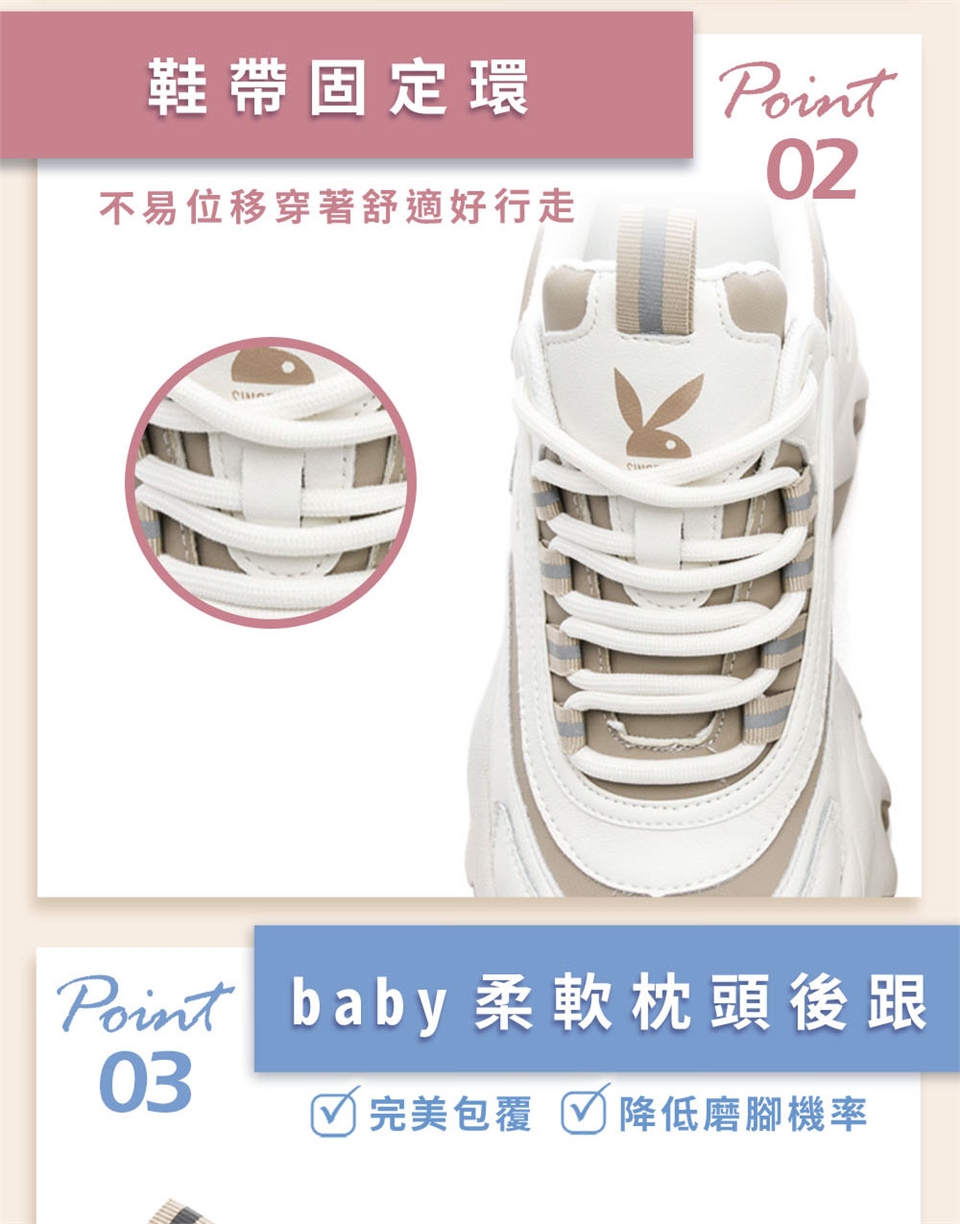 PLAYBOY 真皮美腿製造機老爹鞋-白杏 |