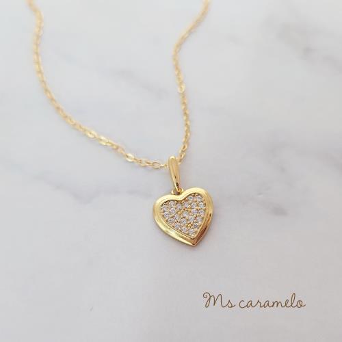 【焦糖小姐 Ms caramelo】925純銀鍍K黃鋯石項鍊(滿鑽桃愛心項鍊)
