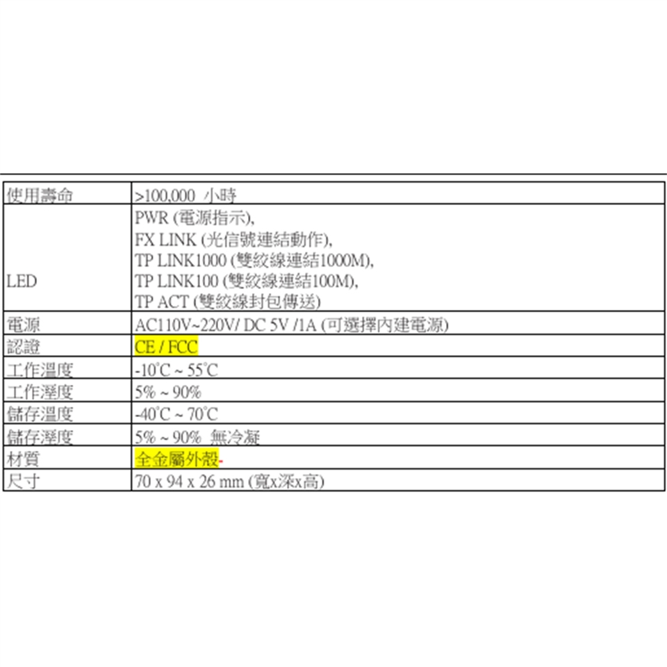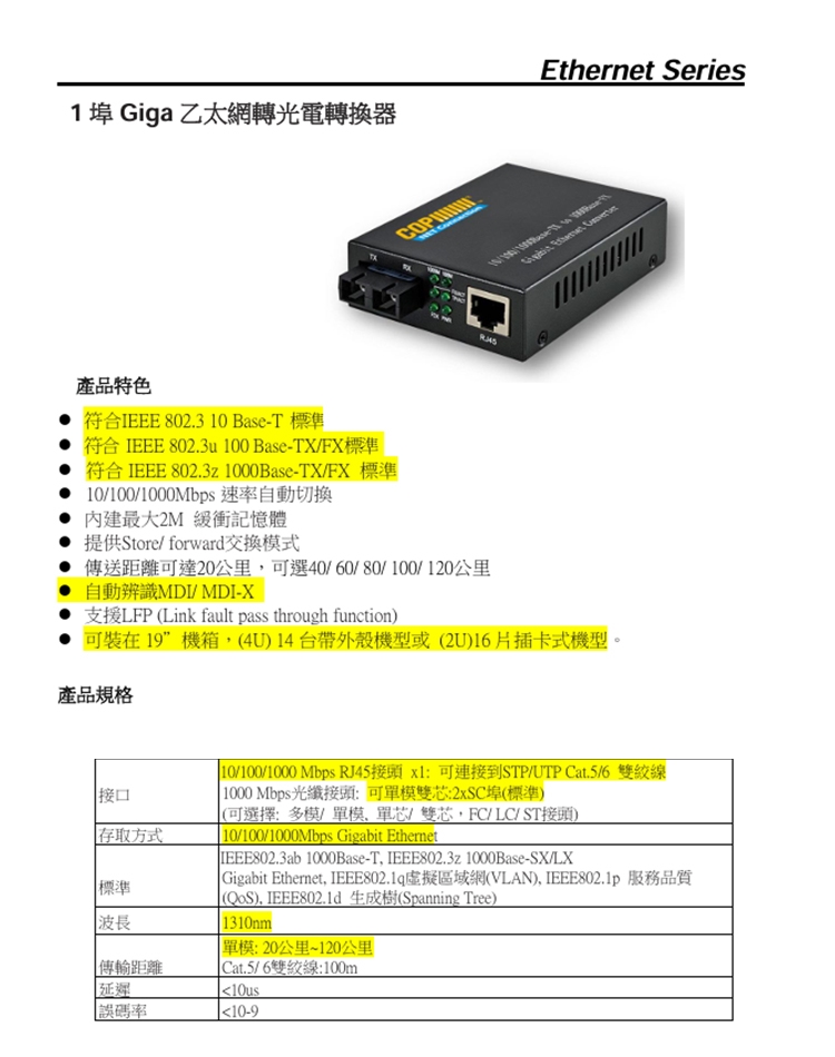.符合IEEE 802.3z 1000Base-TX/FX標準。