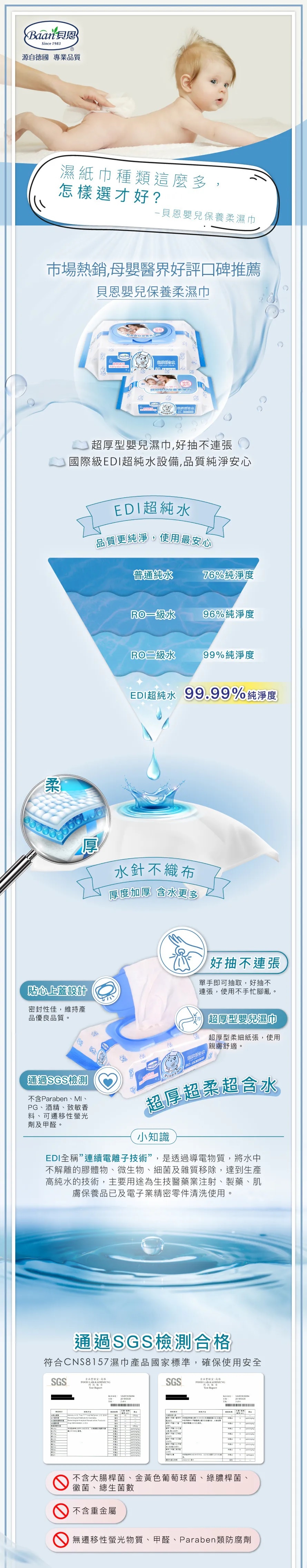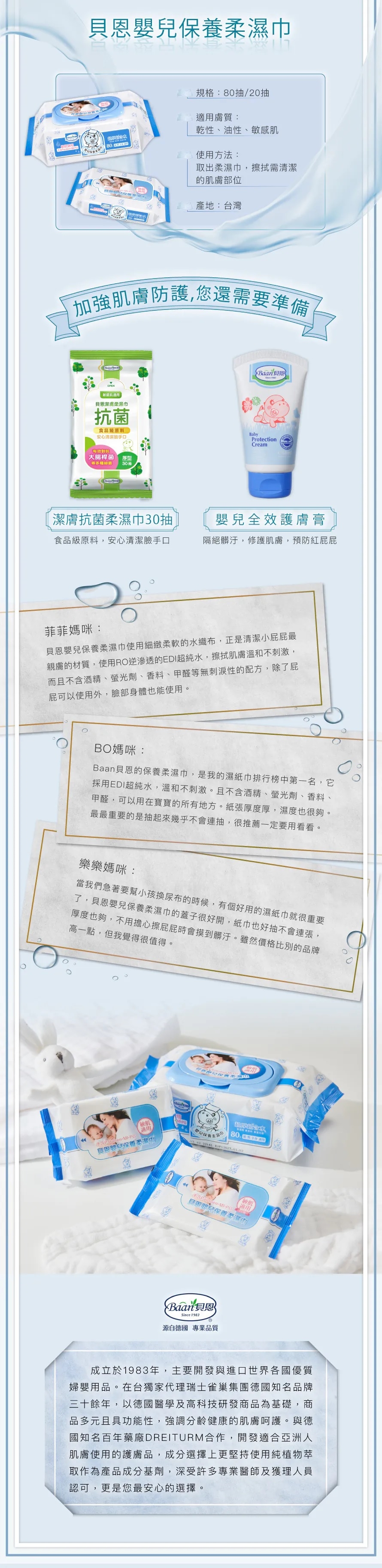 台灣 Baan 貝恩 嬰兒保養柔濕巾-無香料(80抽x3包)
