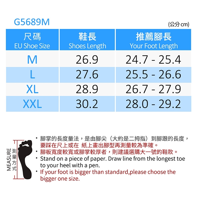 量一下自己的腳長和腳寬