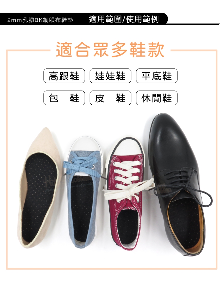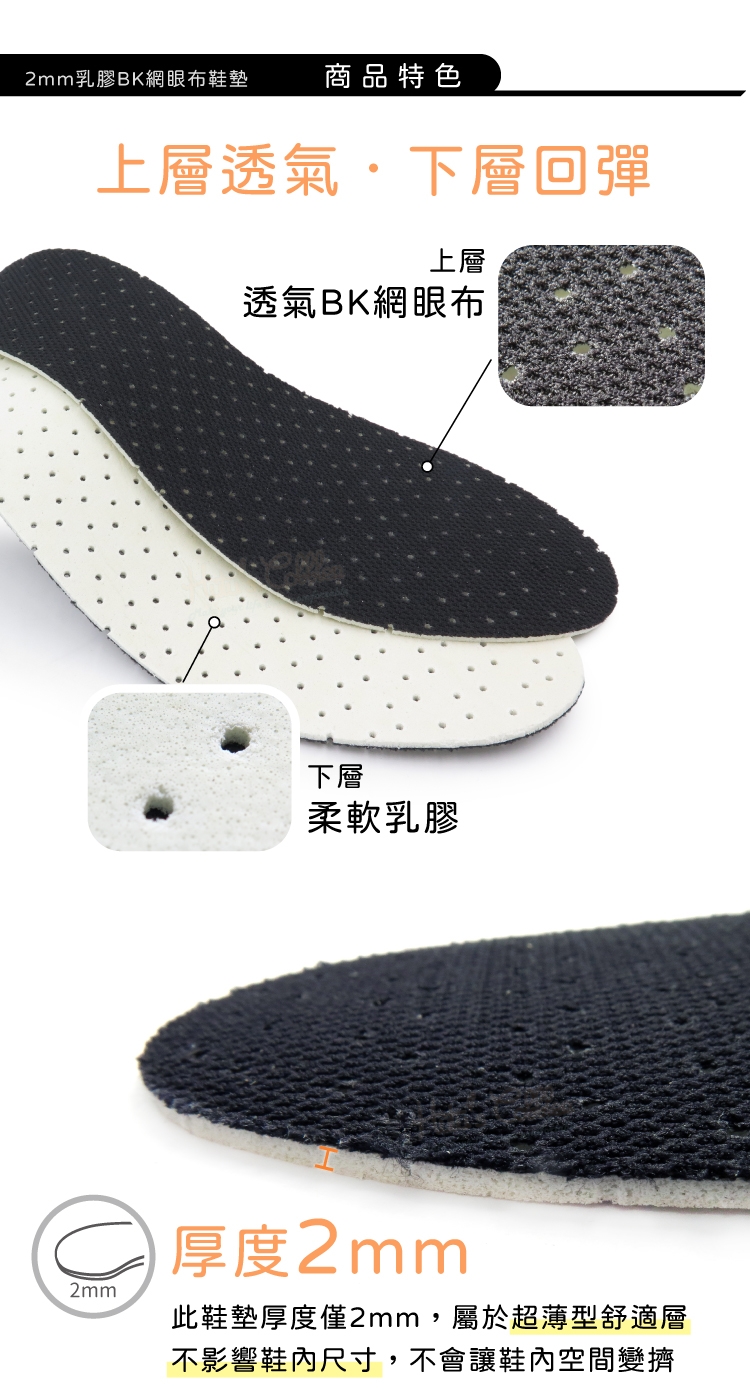 材質:2mm乳膠BK網眼布鞋墊