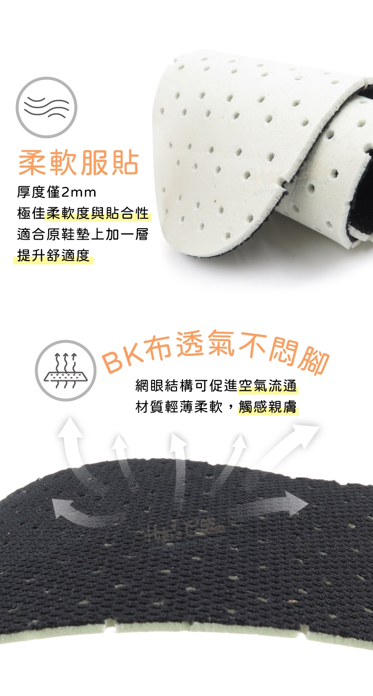 此鞋墊厚度僅2mm,屬於超薄型舒適層