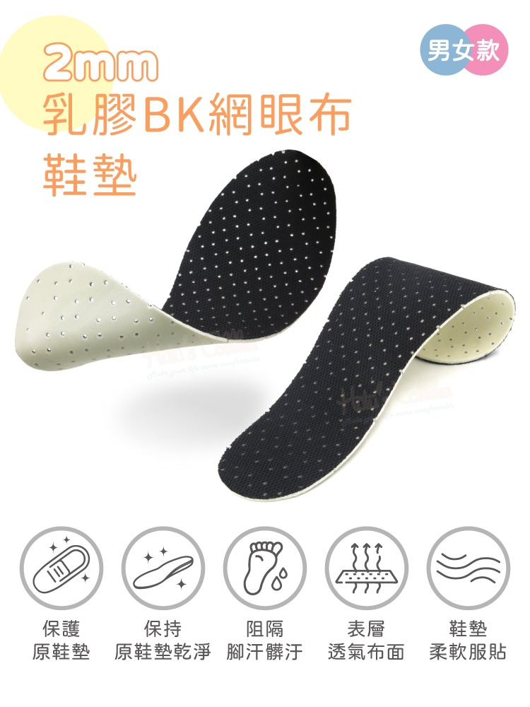 2mm乳膠BK網眼布鞋墊特色: