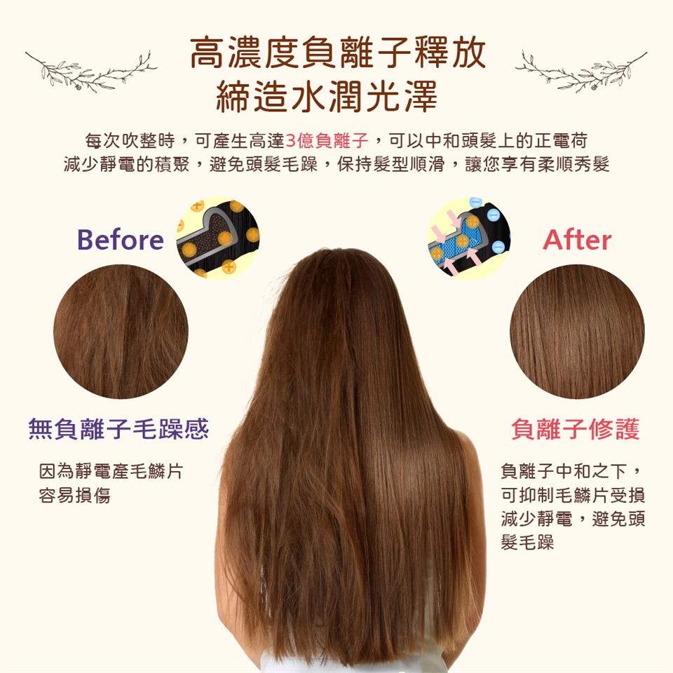 | ◆3億負離子,秀髮柔順飄逸、降低毛躁 |
