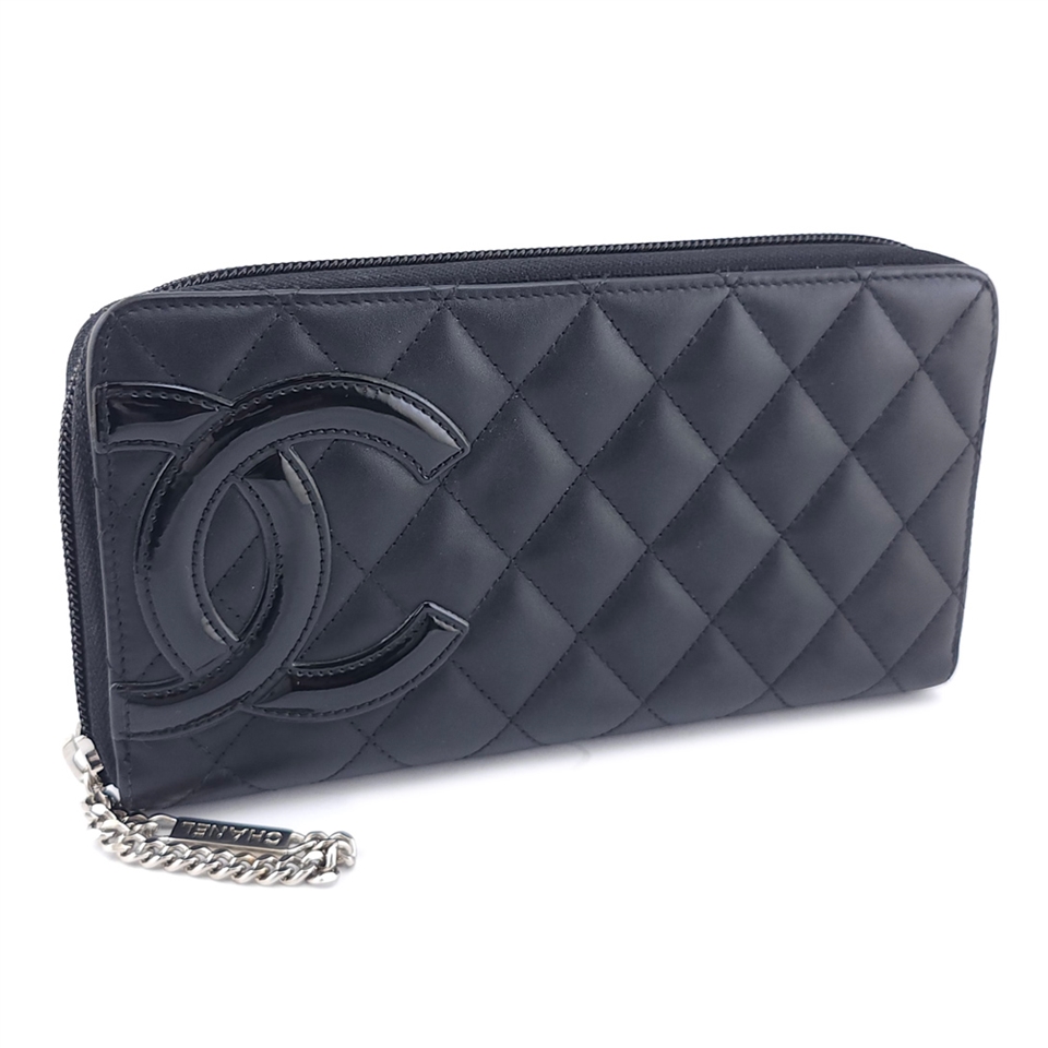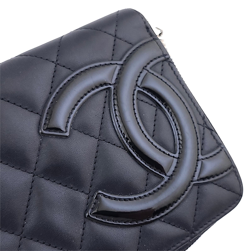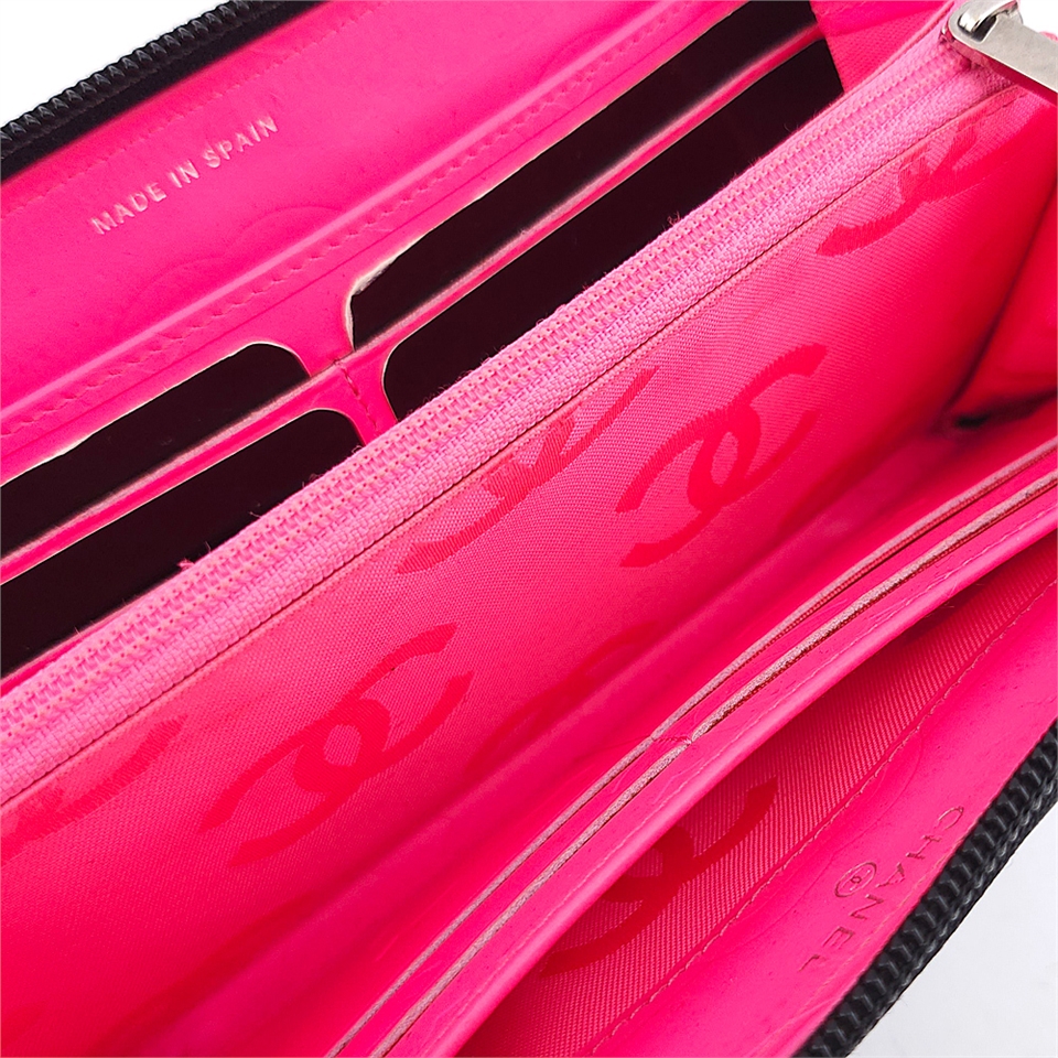 • 材質:黑色菱格紋羊皮 + 黑色漆皮雙C LOGO + 粉紅色壓紋皮革內裡