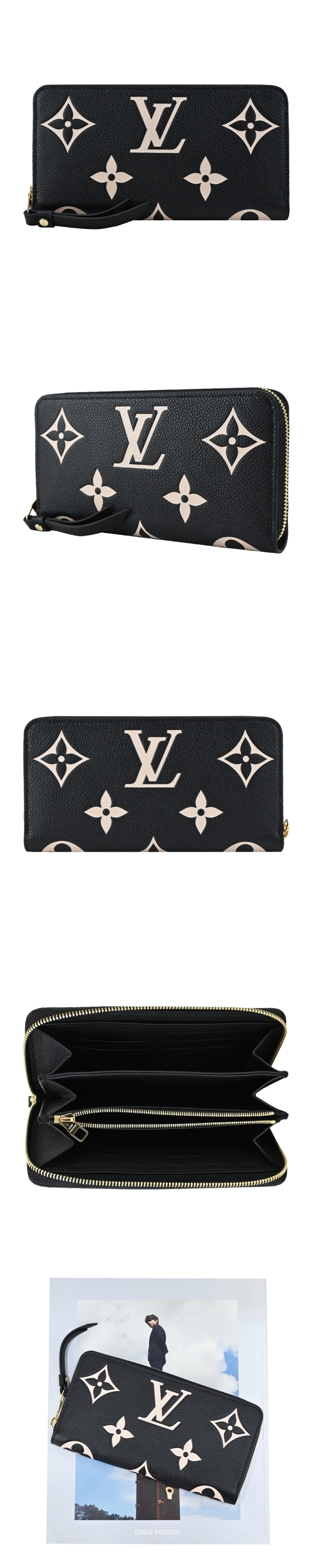 Louis Vuitton 雙色Monogram Empreinte皮革拉鍊長夾(黑色)