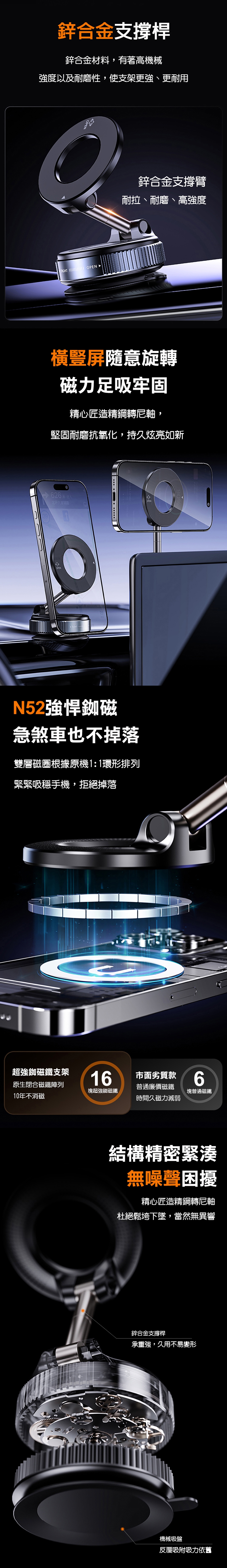 3.N52強力銣磁鐵,緊吸手機狂抖不掉。
