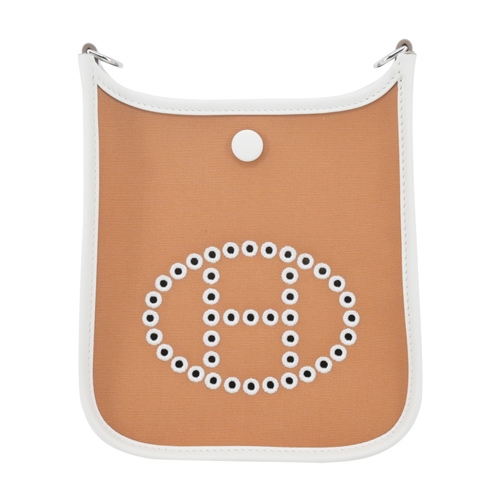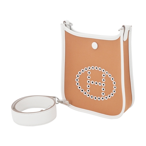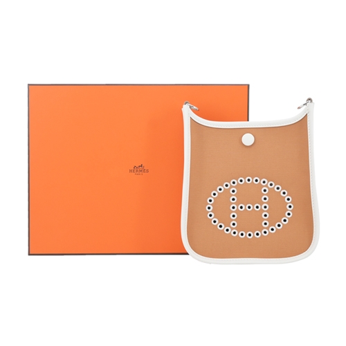 Hermes 愛馬仕 Neo Evelyne 16cm H LOGO迷你帆布斜/肩背包(AD沙棕/象灰/奶灰/W刻/銀釦)