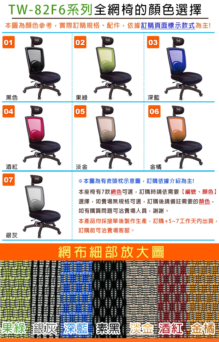 【TW-82F6 高背半網電腦椅】