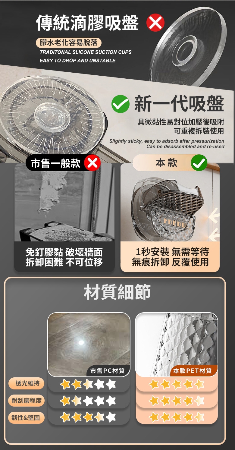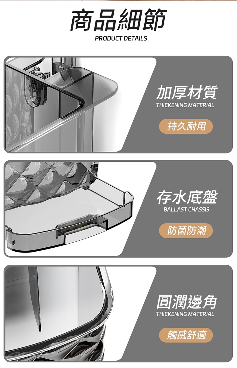 商品詳細介紹 體驗說明 不可體驗 使用方法說明 款式:菱紋透灰、菱紋透明商品尺寸:106x94x148mm材質:PET 注意事項 ◎ 貼心提醒:本商品屬一次性商品,除新品瑕疵外,一經拆封、黏貼、中間活動條推壓使用,恕無法接受退換貨。