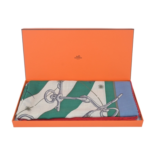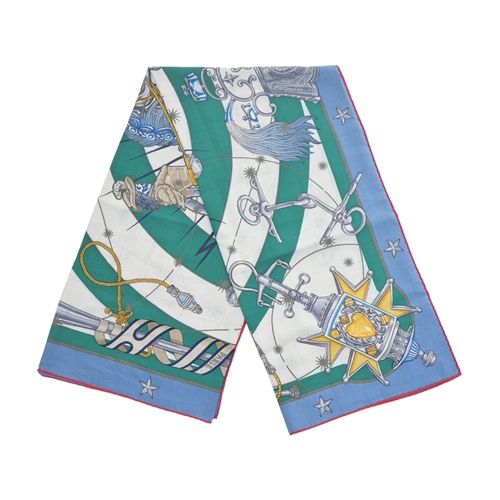Hermes 愛馬仕 Chorus Stellarum 140 手工捲邊喀什米爾與真絲混紡方巾(牛仔藍/自然色/英國綠)